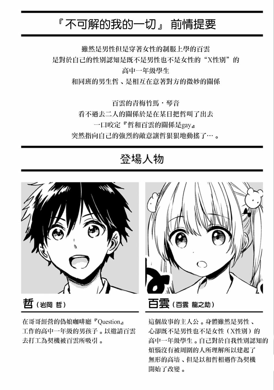 第02卷附录 这一目录包含了《不可解的我的一切》第02卷的附录部分,收录了多篇关于跨性别主题的漫画作品。这些作品不仅探讨了跨性别者的生活经历和内心世界,也反映了社会对跨性别者的认知与误解,展现了他们在社会环境中的挣扎与抗争。 总计 21 篇内容 🖼️ 图片 001 002 003 004 005 006 007 008 009 010 011 012 013 014 015 016 017 018 019 020 021 本内容为自动生成,请修改 .github/ 目录下的对应脚本或者模板 Share on Share on
